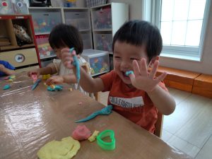 またまた時間が空いてしまいました💦今日はお庭遊びや室内遊びの様子をUPしたいと思います🤭お天気のいい日はお庭で砂場遊びやシャボン玉などをします。暑い日や雨の日は室内で小麦粉粘土を🤗新聞びりびりをする時は、お部屋中に新聞を広げて遊びます📰写っていませんが、遊ぶ時は先生も本気です🤣🤣🤣